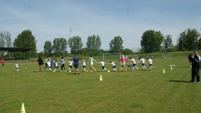 Młodzi piłkarze grali mecz a tuż na sąsiednich boiskach Mamy wraz z dziećmi brały udział w konkurencjach. Bez wątpienia każdy z uczestników dobrze się bawił. Dla wszystkich Mam była do dyspozycji Pani dietetyk, która udzielała cennych rad w odżywianiu. Dodatkowo Mamy chętnie skorzystały ze wspólnego pokazu fitness. Obowiązkowym punktem turnieju było wystąpienie przedstawiciela CDT Medicus Pani Barbary Ośmiałowskiej, która podkreśliła jak ważne są badania profilaktyczne oraz przedstawiła, w których placówkach można wykonać badanie.