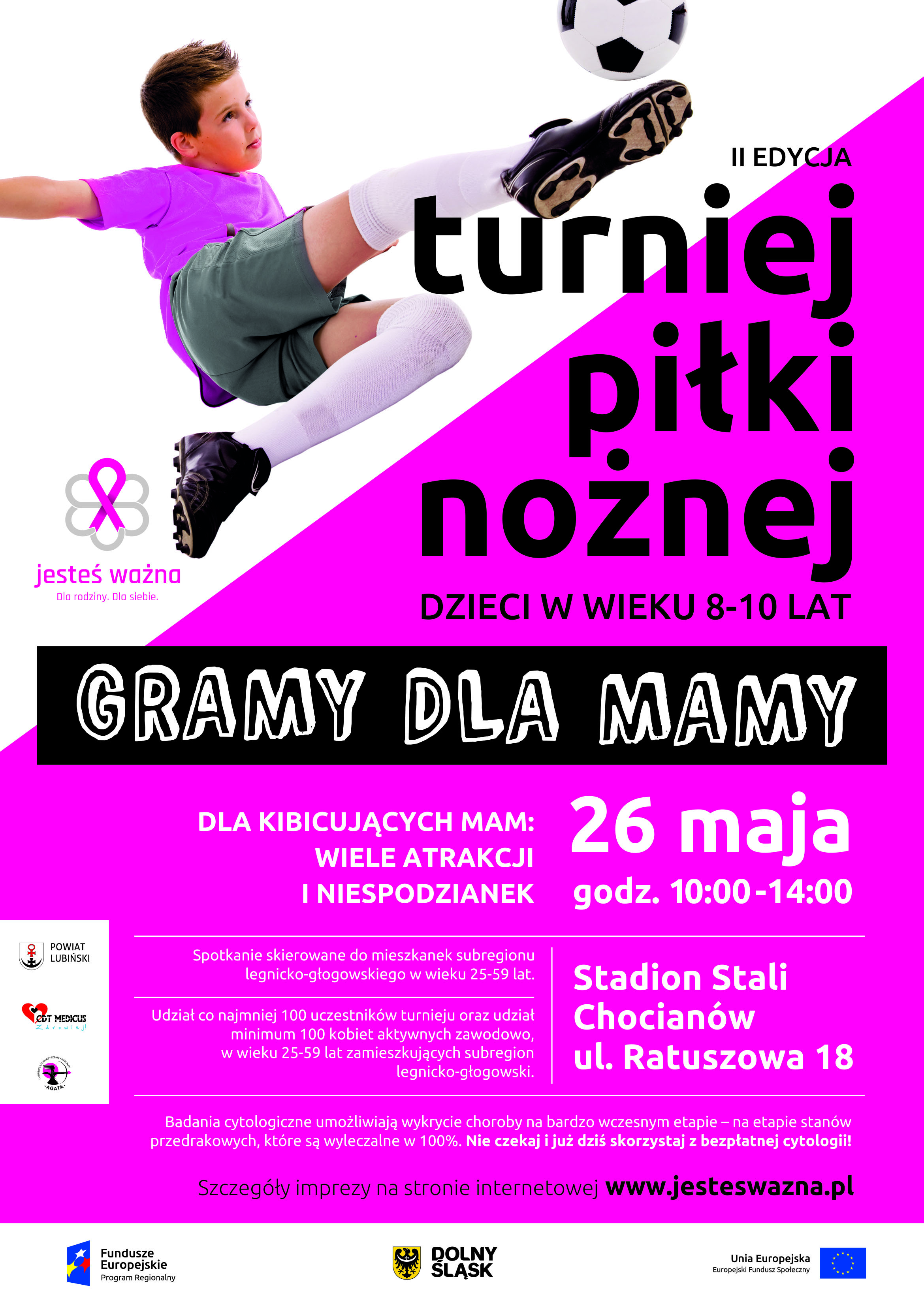 26 maja 2019 r. powiat lubiński wraz z partnerami zaprasza na II edycję turnieju piłkarskiego „Gramy dla Mamy”.