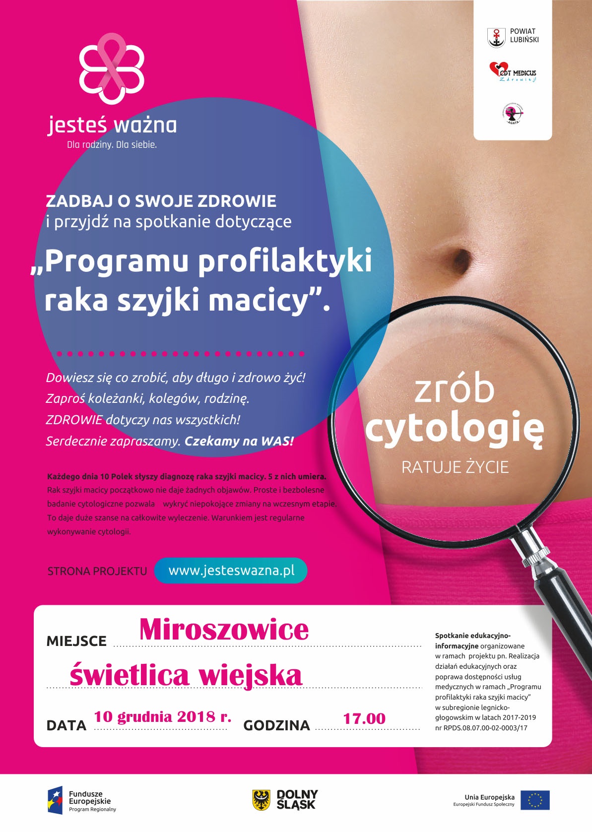 Jeszcze w grudniu 2018 r. ruszamy z nowym zadaniem w ramach projektu, które będzie realizowane do końca września 2019r. Tym razem będziemy odwiedzać Wasze miejscowości wraz ze specjalistami, którzy opowiedzą Wam jak ważna jest profilaktyka raka szyjki macicy, jak zminimalizować ryzyko zachorowania i jak prowadzić zdrowy tryb życia. Edukacyjnych spotkań odbędzie się aż 30 i przewidujemy, że uda nam się dotrzeć do min. 600 osób. Wszyscy powinniśmy dbać o swoje zdrowie, dlatego zapraszamy wszystkie kobiety, ale także ich rodziny i przyjaciół do udziału w tym przedsięwzięciu.