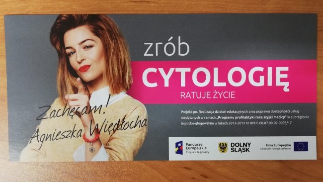 W lutym do mieszkańców powiatu lubińskiego i polkowickiego będą dostarczone zaproszenia zachęcające do skorzystania z bezpłatnych badań cytologicznych. Mamy nadzieję, że przekonają Was do pójścia na badanie cytologiczne. Zapytajcie też swoje mamy, babcie i przyjaciółki, kiedy ostatnio robiły cytologię.